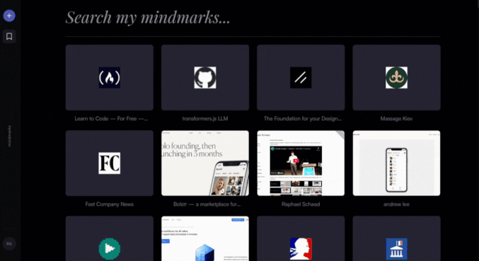 Mindmark is a bookmark manager browser app that combines natural language search with manual organization. You can search using context ("React tutorials"), or browse by Spaces (user-created collections).